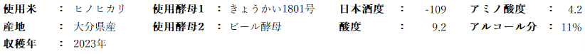 味わいにコクを与えるとされるアミノ酸度が低く、雑味の少ない洗練された味わいが感じられる。