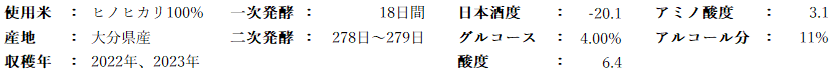 また、麹の出麹酸度を上げることで商品の酸度を高め後味のキレをよくした。