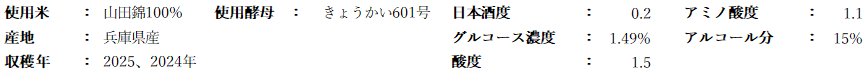 本ロットでは、麹に使用する米はすべて2025年産の山田錦を使用し、仕込み用の米については仕上がりのイメージに合わせて、2024年産の山田錦を一部取り入れて使用した。