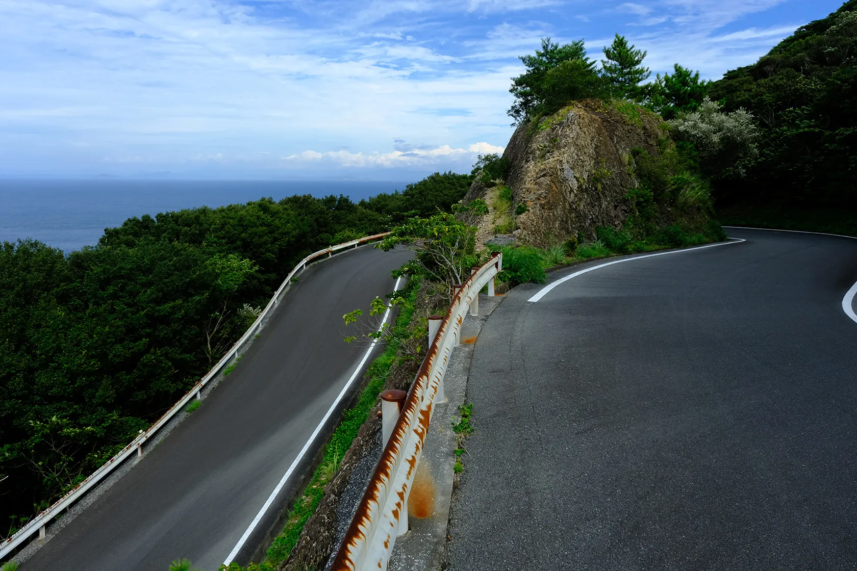 豊後くろしおラインを通る途中、映画「釣りバカ日誌」のロケ地にもなった「空の公園・空の展望所」から日向灘(ひゅうがなだ)と遠くに四国を一望する。蒲江(かまえ)から佐伯までの海岸沿いの道は、小さな入江の漁港をめぐり、波打ち際の道を走り、時にはアップダウンで海から空に駆け抜ける道。「楽しい」。ヘルメットの下で思わず笑みがもれる。佐伯に着く頃、来年もまた走りに来るぞと心に決めた。大分の道に僕は虜になった。