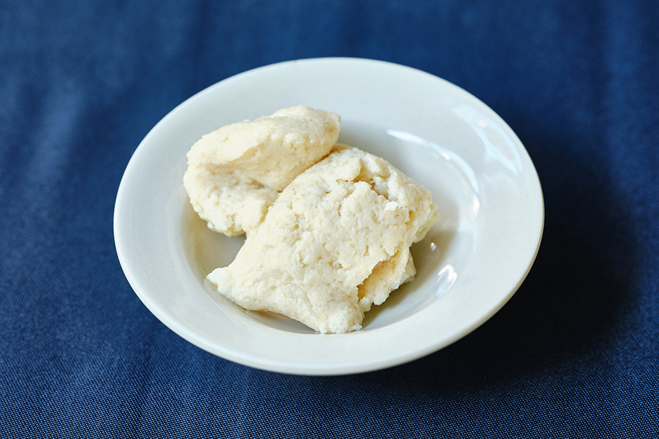 計画を進めましたが、イベント自体はコロナ禍で中止に。でもその過程で発酵食材として紹介していただいた「みりん粕」と出合うことができました。別名「こぼれ梅」とも呼ばれます。もち米などからみりんをつくる工程でできる搾りかすですが、酒粕のような独特の香りもほとんどなく、上品で自然なもち米の甘みが残っていて美味しいのです。