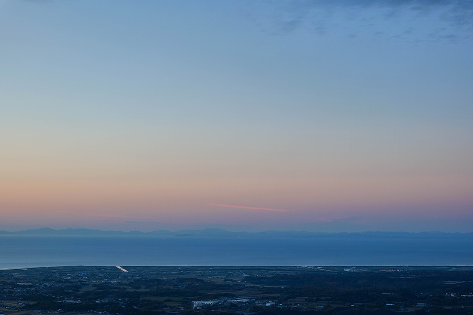 国東半島の山々に白く霞がたなびき、その向こうに夕映えが広がっていた。息を呑む。美しすぎる。飛行機は高度を上げていく。美しい光景は、偶然出合うもの。思いがけないからこそ、記憶に深く刻まれる。この光景が、感動の原風景になる。旅の最後に、静かなる神仏の精(しら)げが現れた。あの美しい手紙を書く友人なら、この光景をどんな言葉で綴るだろうか。霞たなびく山々を歩いてみたい。旅の終わりに、新しい旅へと心は逸(はや)るのだ。